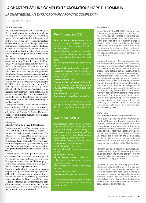 Né le 1 décembre 1978 dans une famille vigneronne, sur les rives suisses du lac Léman, j’ai étudié à Changins pour en ressortir ingénieur œnologue en 2004. Dès 2002, je me suis particulièrement intéressé à la dégustation et à l’analyse sensorielle. C’est donc naturellement que j’ai effectué ma thèse d’ingénieur sur les relations possibles entre l’œnologie et la parfumerie. Depuis, ce thème est devenu le fil conducteur de mes activités professionnelles, puisque j’ai travaillé plusieurs années dans la création en parfumerie. Aujourd’hui, l'essentiel de mes activités consiste dans le consulting oenologique, la formation des professionnels du vin en analyse sensorielle, ainsi que des conférences, tout cela dans de nombreux pays viticoles. En plus d'enseigner l'analyse sensorielle dans différentes écoles comme l'ISVV à Bordeaux ou Changins, j'ai aussi eu la chance d'être nommé Secrétaire scientifique des prix de l'OIV (Organisation Internationale de la Vigne et du Vin). - Le Temps 2025 (FR) - Le Monde 2023 (FR) - Le Messager 2022 (FR) - Champagne 2022 (FR) - 24h 2022 (FR) - Le Figaro 2021 (FR) - Vinum 2021 (FR) - Exclusive Wine Tours 2021 (FR) - Dnevnik 2020 (SL) - Si21 2020 (SL) - O Vinu 2020 (SL) - Ferment 2019 (PL) - Vinum 2019 (FR) - Modri Les Noirs 2019 (EN) - Le Nouvelliste 2019 (FR) - Spirits in my Head 2019 (FR) - Le Quotidien Jurassien 2019 (FR) Cet article est reproduit avec l'autorisation des Editions D+P SA - L'Officiel Voyage 2018 (RU) - 20minutes 2018 (FR) - Le Parisien 2018 (FR) - FIFI Summer Fragrances Festival 2018 (RU) - Le Guillon 2018 (DE) - Le Guillon 2018 (FR) - Spiritus Vinum 2018 (FR) - Le Nouvelliste 2017 (FR) - Psychologies 2017 (FR) - NEZ 2016 (FR) - La Liberté 2016 (FR) - El Espectador 2016 (ES) - Planeta Vino 2015 (ES) - CAV 2015 (ES) - Lifestyle 2015 (ES) - Vitenda 2015 (IT) - Mundoagro 2015 (ES) - Mostos y Destilados 2015 (ES) - Vinum 2015 (FR) - Champagne Viticole 2015 (FR) - Darjeeling First Flush 2015 (FR) - Christopher Fielden 2015 (EN) - Circle of Wine Writers 2014 (EN) - Tribune de Genève 2014 (FR) - Terre et Nature 2014 (FR) - Agri 2014 (FR) - La Liberté 2013 (FR) - Le Regional 2013 (FR) - Le Temps 2013 (FR) - Vinifera Mundi 2013 (DE) - Vinum 2013 (FR) - Migros Magazine 2012 (FR) - Le Temps 2011 (FR) - Journal de Morges 2011 (FR) - La Côte 2011 (FR) - Musée International de la Parfumerie 2011 (FR) - Hôtel Revue 2011 (FR) - Hachette 2009 (FR) - Tribune de Genève 2008 (FR)